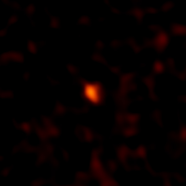 English: ALMA image of the faint millimeter-wavelength "glow" from the planetary body 2014 UZ224, more informally known as DeeDee. At three times the distance of Pluto from the Sun, DeeDee is the second most distant known TNO with a confirmed orbit in our solar system. |